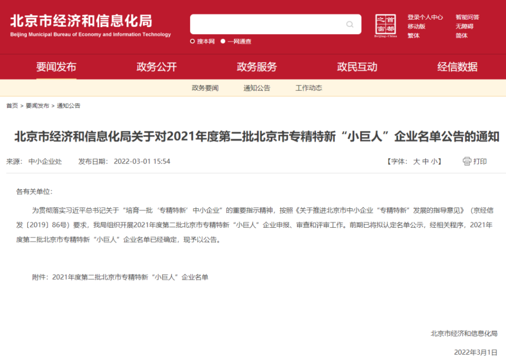 近日,北京市经济和信息化局网站公布了2021年度第二批北京市专精特新“小巨人”企业名单,北京旌准医疗科技有限公司凭借在血液肿瘤及器官移植等领域的专业优势以及特色服务成功荣获北京市专精特新“小巨人”称号。