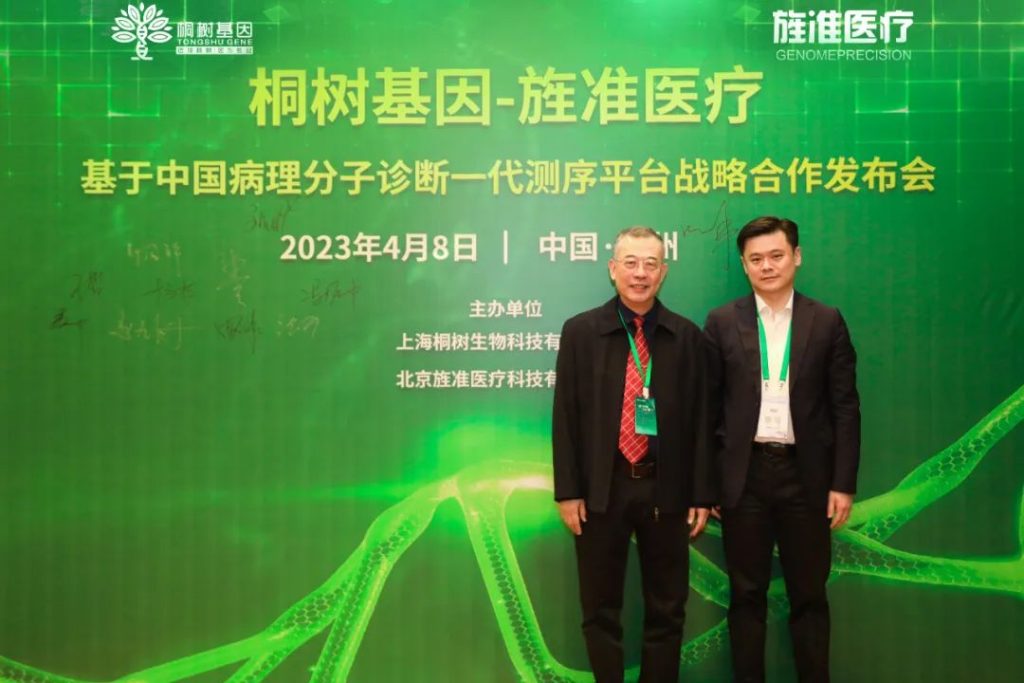 2023年4月8日,桐树基因与旌准医疗基于中国病理分子诊断一代测序平台签署战略合作协议。双方携手,在未来的发展中相互赋能,互利共赢。在上海长海医院朱明华教授见证下,桐树基因CEO严令华先生和旌准医疗董事长兼总经理叶锋先生代表双方签约,中山大学附属第一医院柯尊富教授进行精彩学术分享,近百位病理大咖出席本次签约仪式。